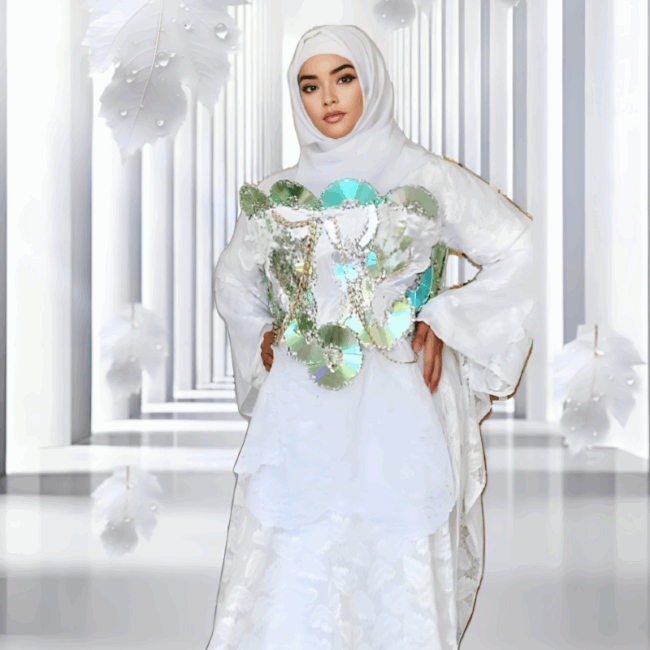 Tauche ein in eine Welt, in der Mode zu Kunst wird. Jedes unserer Kleider erzählt eine Geschichte – inspiriert von der Schönheit der Natur, der Reinheit des weißen Blattes oder der glänzenden Oberfläche einer CD, die Erinnerungen und Lebensgeschichten widerspiegelt.