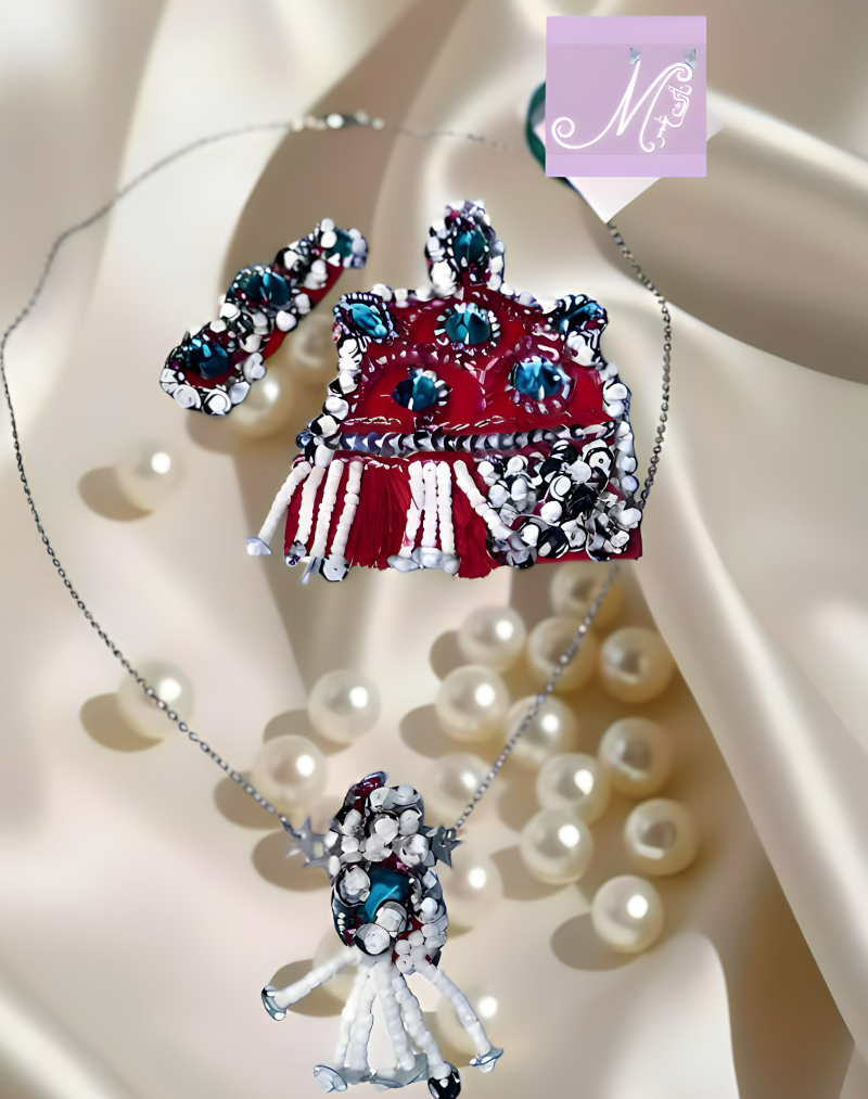 Dieses 2-teilige Kristallschmuckset besticht durch seine kunstvolle Handarbeit und den harmonischen Kontrast aus tiefblauen Kristallen, rotem Akzent und silbernen Elementen. Die edle Kombination aus leuchtenden Steinen und feinen Perlen verleiht jedem Outfit eine besondere Ausstrahlung.Das Set besteht aus einer eleganten Halskette und passenden Ohrringen, die durch ihr einzigartiges Design hervorstechen. Jedes Stück wurde mit Liebe zum Detail gefertigt – für Frauen, die Individualität und Stilbewusstsein schätzen.Ob festliche Anlässe, Abendveranstaltungen oder als Highlight im Alltag – dieses Schmuckset setzt ein klares Statement und unterstreicht die Persönlichkeit seiner Trägerin.