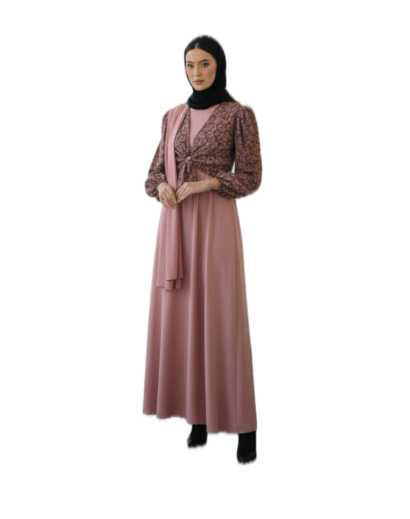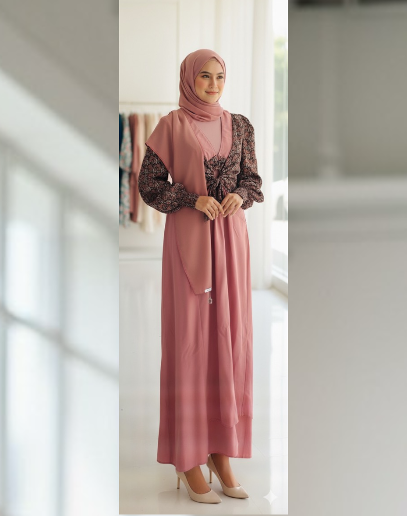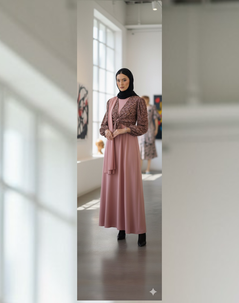 Design: Elegantes Maxikleid mit stilvollem Oberteil und passendem Hijab.