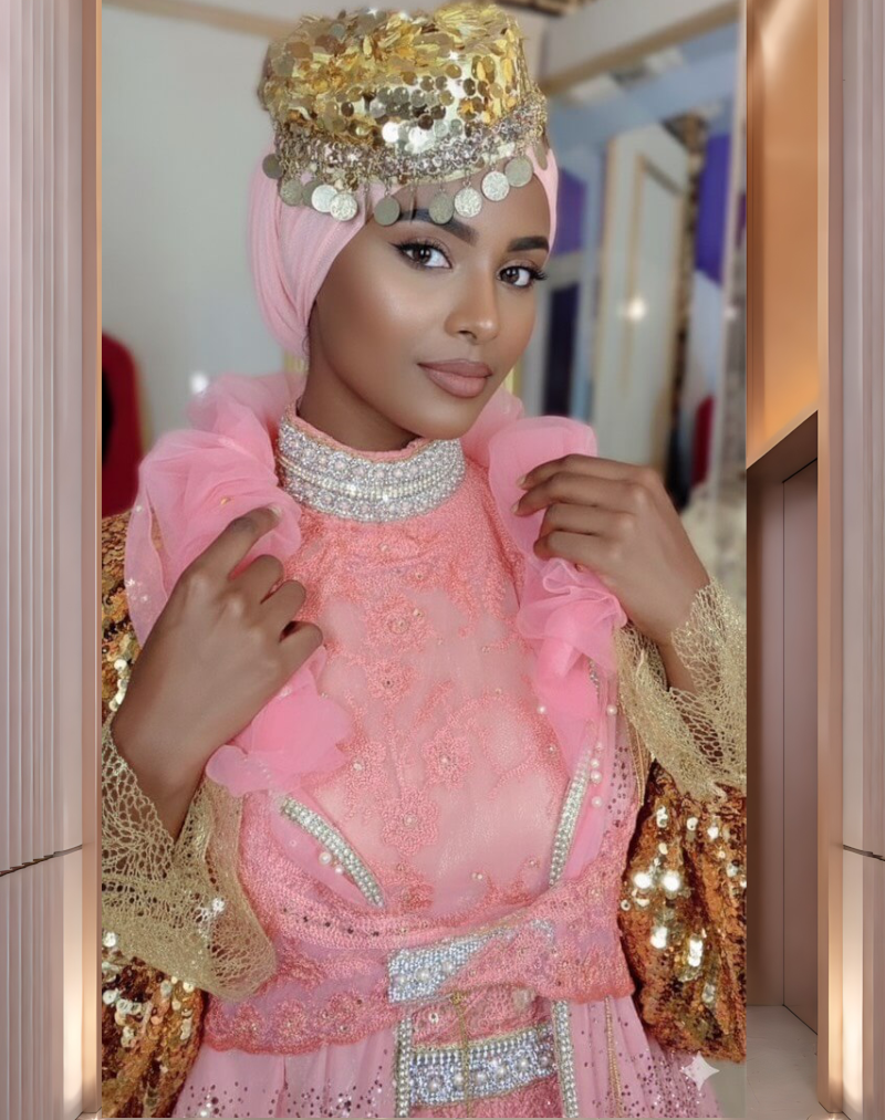 Zelebrieren Sie Ihre Kultur und Ihren Stil in diesem prachtvollen Design von Nazik Omar, das traditionelle Inspiration mit modernem Glamour vereint.