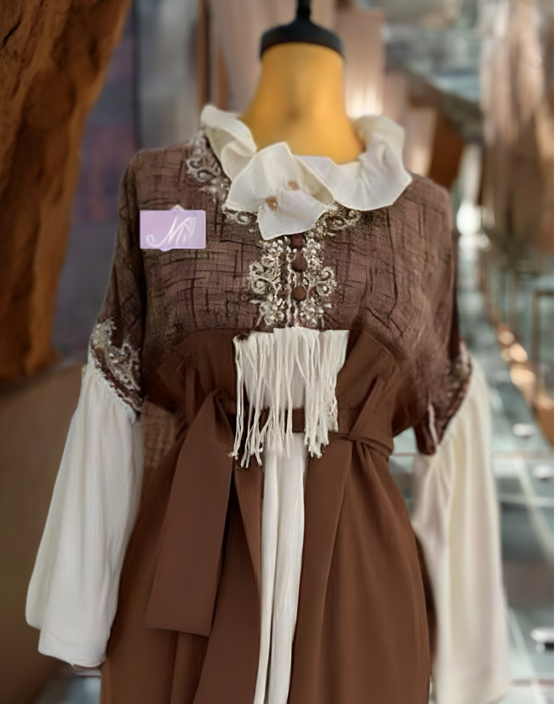 Dieses braune Kleid vereint schlichte Eleganz mit natürlichem Charme. Die warmen Brauntöne erinnern an die Ruhe der Natur und lassen sich mühelos zu vielen Anlässen tragen – ob für ein wichtiges Treffen, einen entspannten Shopping-Tag,