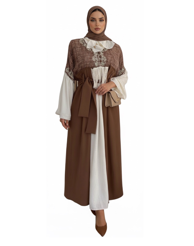 Elegantes braunes Kleid in Naturtönen – ideal für Termine, Shopping, Abendveranstaltungen oder den Alltag. Bequem, stilvoll und passend zum modernen Hijab-Style. Verfügbar in den Größen S & M für nur 300 Fr.