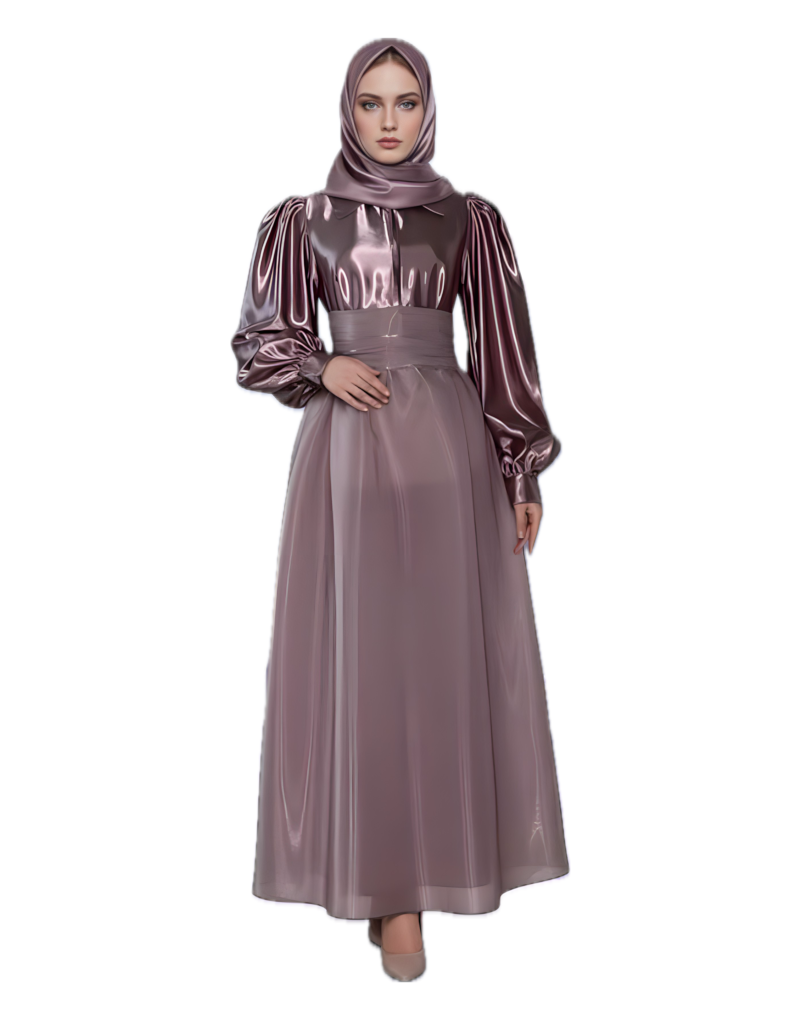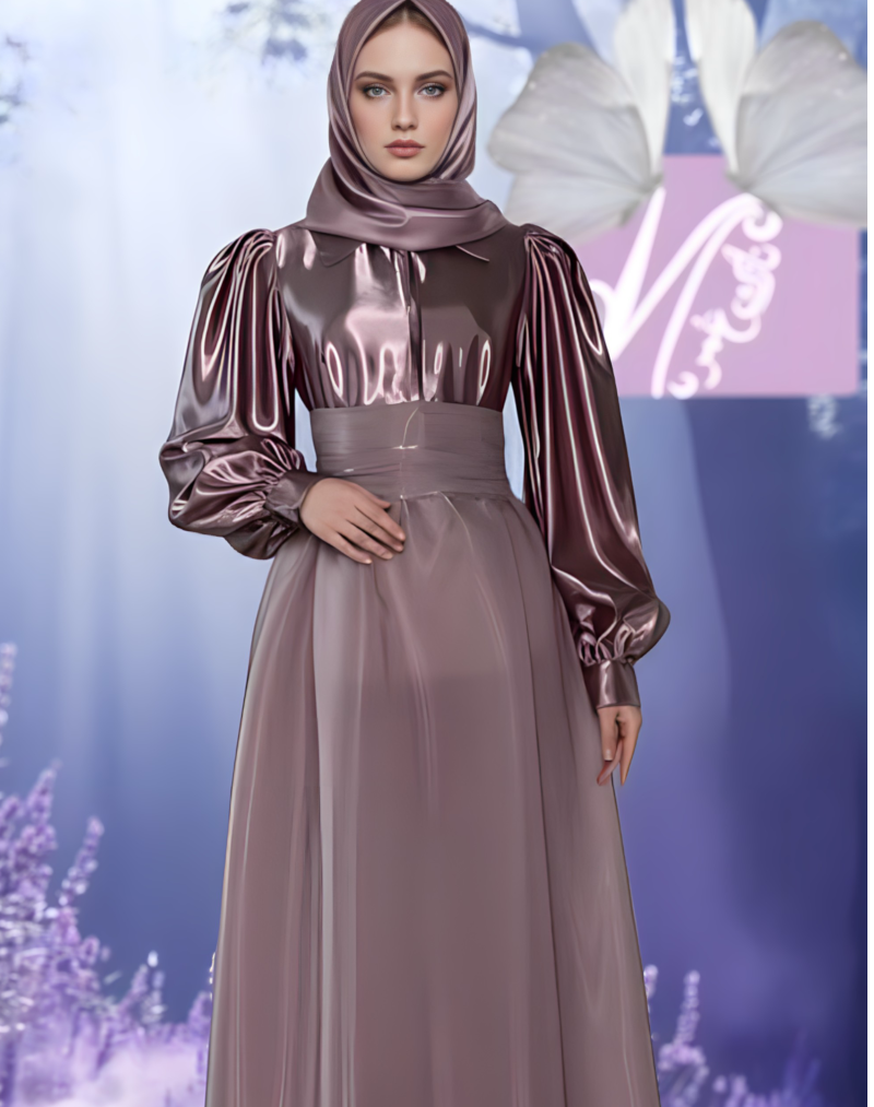 von purem Glamour und Eleganz. Dieses atemberaubende Fest- & Hochzeitskleid in der einzigartigen Farbe Diamond Discreet Mauve ist mehr als nur ein Kleid – es ist ein Statement voller Anmut, Weiblichkeit und Luxus. Der fließende Stoff mit schimmerndem Glanz fängt das Licht bei jeder Bewegung ein und verleiht dir eine unwiderstehliche Ausstrahlung. Die raffiniert gearbeiteten Puffärmel und die elegante Taillenbetonung lassen deine Silhouette königlich wirken, während die bodenlange Form für eine majestätische Präsenz sorgt